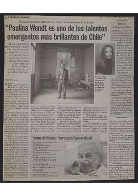Copia digital de la entrevista realizada a Raúl Zurita por Rodrigo Castillo, publicada en el diario Las Últimas Noticias el 20 de marzo del año 2003. En esta se aborda principalmente la postura del poeta frente a la acusación de plagio a su pareja, Paulina Wendt, por su cuento "El Cazador", el cual presenta similitudes con el relato "El fin del viaje" del escritor argentino, Ricardo Piglia. Además, se incluye en el artículo un "Poema de Nicanor Parra para Paulina Wendt".