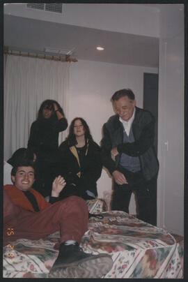 En esta fotografía aparecen Malú Urriola, Andrea Maturana, Mario Benedetti y otros escritores que participaron en el Foro joven: literatura y compromiso, celebrado durante febrero de 1993 en Mollina, España.