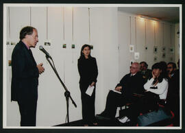 En esta fotografía se observa a José Weinstein, presidente del Consejo de la Cultura y las Artes de la época, pronunciando un discurso en la ceremonia de premiación.